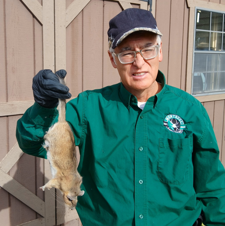 Only a few days ago we received a call from Telluride, a nationwide pest company with little white trucks had just left this concerned woman's beautiful multimillion dollar home. The little white truck technician heard her story about hearing noises in the walls and he placed 6 small mice traps and 2 little poison bait stations in her downstairs cellar nowhere near where she was hearing the noises. He was there no more than 15 minutes she stated. She called us immediately afterwards. Upon arriving I asked her where she was hearing the noises and did a thorough inspection of her full property. I came to the conclusion that something was behind her cabinets and upon further inspection I found "The Hole" under the built in cook stove. After setting multiple sized traps I caught this bushy tailed wood rat, "AKA Pack Rat". The woman was so grateful and is now a happy customer! What sets us apart? "The Proof Is In The Pudding". That is how we take care of our customers. We go the extra mile to provide Outstanding Customer Service! The proof? One of the biggest pack rats we have caught to date.